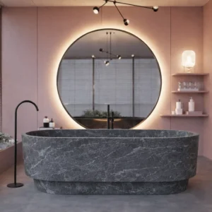 The Pinnacle of bathting ! Step beyond the ordinary and into a sanctuary of sophisticated bathing. The MT.COM Luxury Bathtub collection is the perfect example of how nature along with the perfect geometry and unique design can bring to your shower’s making it your perfect contemporary spa retreat. It start with a large block of natural stone which is crafted with extreme precision and designed to a stunning, relaxing and luxurious batting. It’s not just a bathtub; it’s a sculpture piece that will transform your bathroom into a gorgeous wellness heaven. Available in 4 shapes, Round, oval and rectangle, the MT.COM bathtub collection is when art’s meet nature and simplicity. Our bathtubs are hand crafted and each piece is unique in colors and patterns, return are not eligible for these items.
