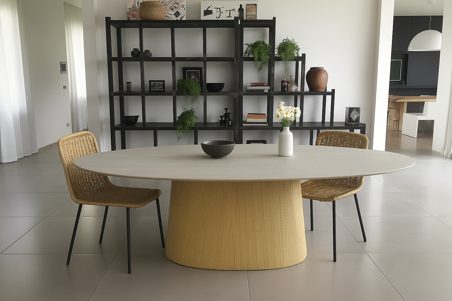 The sturdy central base ensures stability while maintaining a sleek, modern aesthetic. KENZA is not just a functional dining piece—it’s a statement of refined taste, ideal for both intimate dinners and larger gatherings.